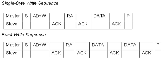 function write_reg_MPU(reg,val) i2c.start(bus) i2c.address(bus, dev_addr, i2c.TRANSMITTER) i2c.write(bus, reg) i2c.write(bus, val) i2c.stop(bus) end